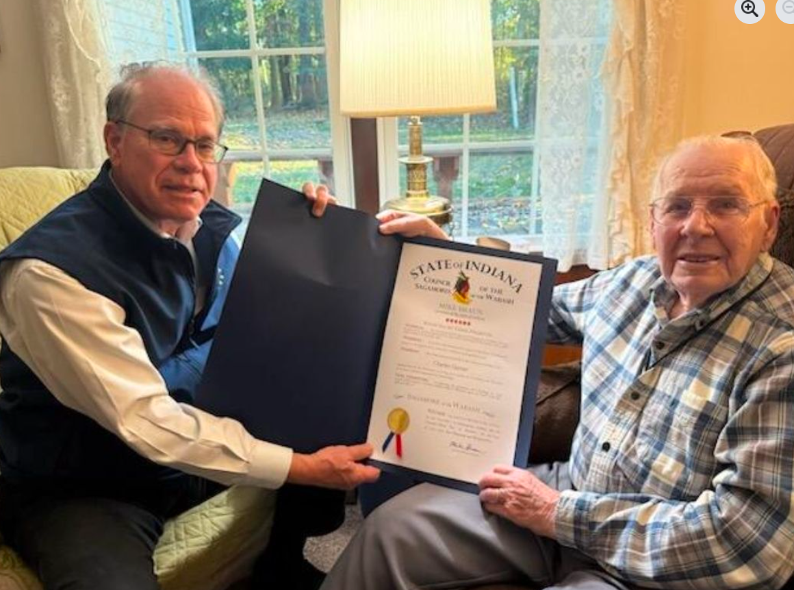 Earlier this year, he was honored by Congressman Rudy Yakym and spent two hours talking with the 2nd District Congressman alongside fellow WW11 veteran Bob Gast during a sitdown in a Warsaw coffee shop.