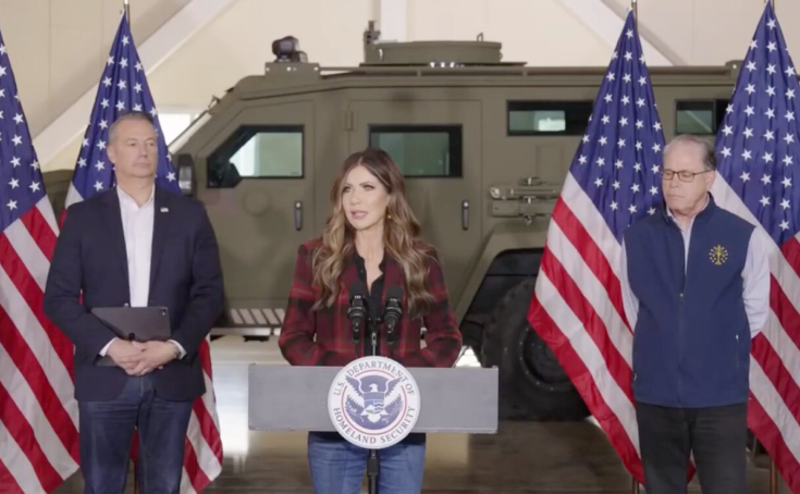 She pointed to large pictures of non-citizens convicted of various crimes, noting that collaborations with state and local law enforcement agencies have yielded more than 3,000 arrests since the “Midway Blitz” began.