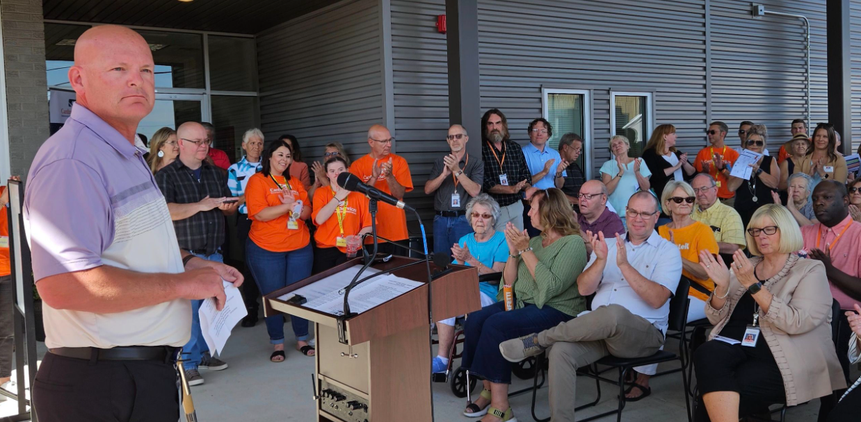“This is a community center. It’s no longer a facility for individuals to come and be here all day. What we want is inclusivity,” said Vickie Lootens, executive director for Cardinal Services, moments after the organization celebrated alongside Warsaw Mayor Jeff Grose and a large group of volunteers with a ribbon that was accompanied by a pleasant poof of confetti set off with hand-held cannons.