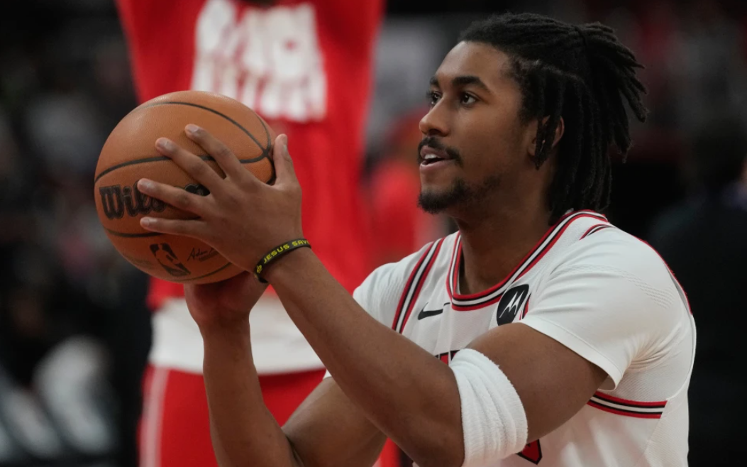 Chicago Bulls guard Jaden Ivey warms up before an NBA basketball game against the Toronto Raptors, Thursday, Feb. 19, 2026, in Chicago. (AP Photo/Erin Hooley, File)