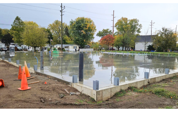 The concrete foundation for the warehouse across the street from the food bank’s existing building is already in place and constuction of walls will begin Monday, said Angie Deak, development manager for the Milford Food bank.