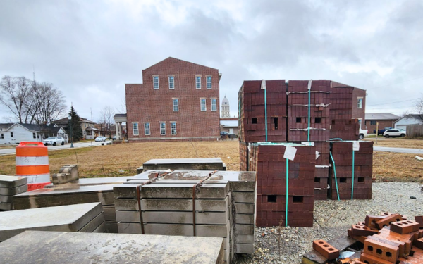 Materials that were part of a construction project Dave Matthews had been constructing at the behest of the city are pictured in January of 2023 after Matthews walked away for the work. News Now Warsaw photo by Dan Spalding.