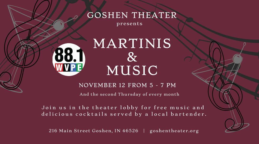 Join us monthly on the Second Thursday from 5-7 p.m. for Martinis and Music.