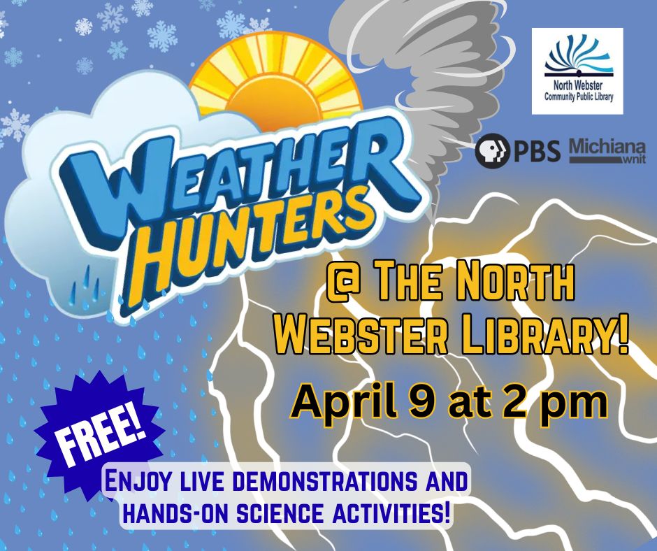 The North Webster Community Public Library has partnered with WNIT, the local PBS affiliate out of South Bend, to present, “Weather Hunters,” an exciting new weather show for kids in kindergarten through 2nd grade!