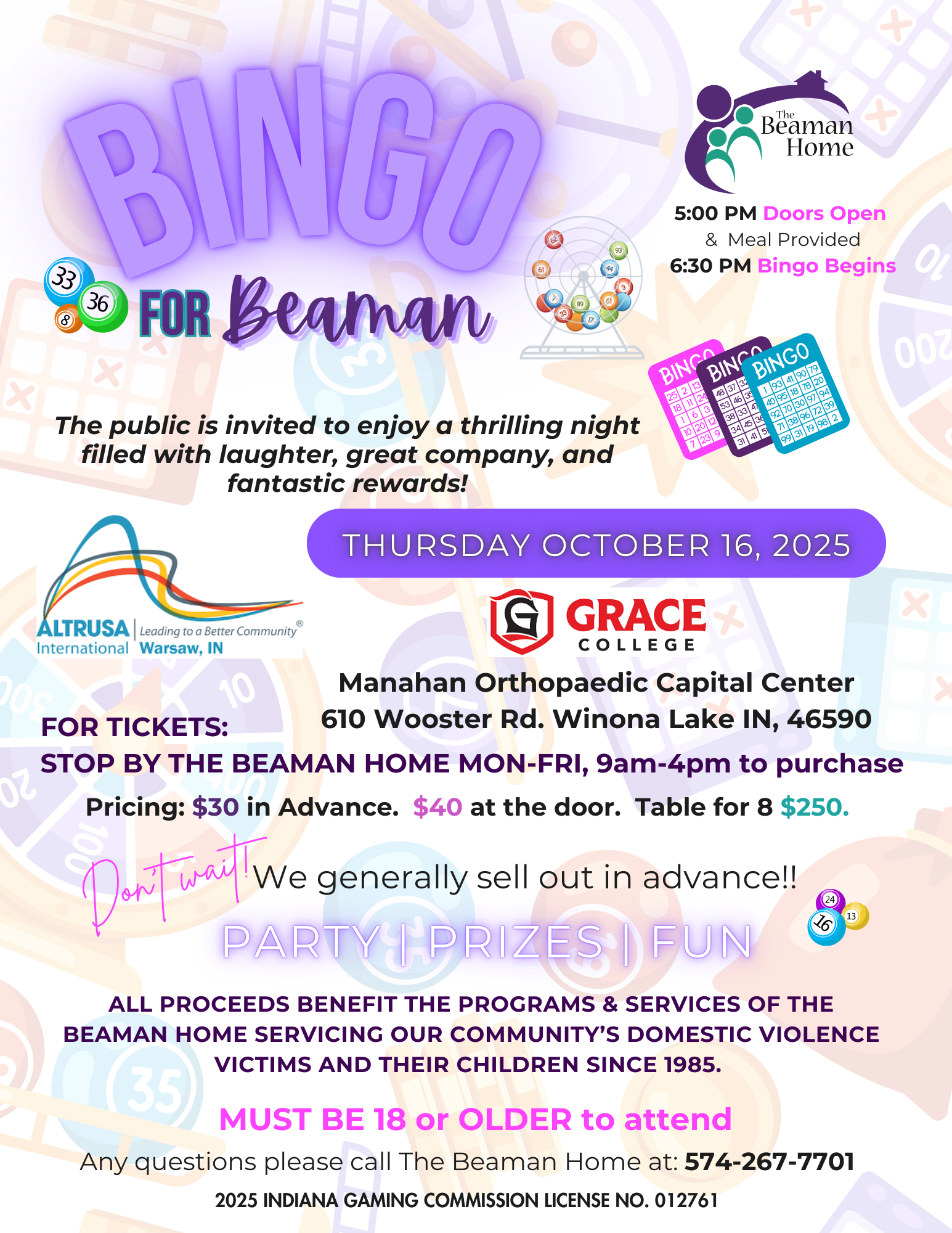 Manahan Orthopedic Capital Center 610 Wooster Road, Winona Lake, IN, United StatesThe public is invited to enjoy a thrilling night filled with laughter, great company, and fantastic rewards, all while supporting our mission to empower and uplift survivors of domestic violence—this […]