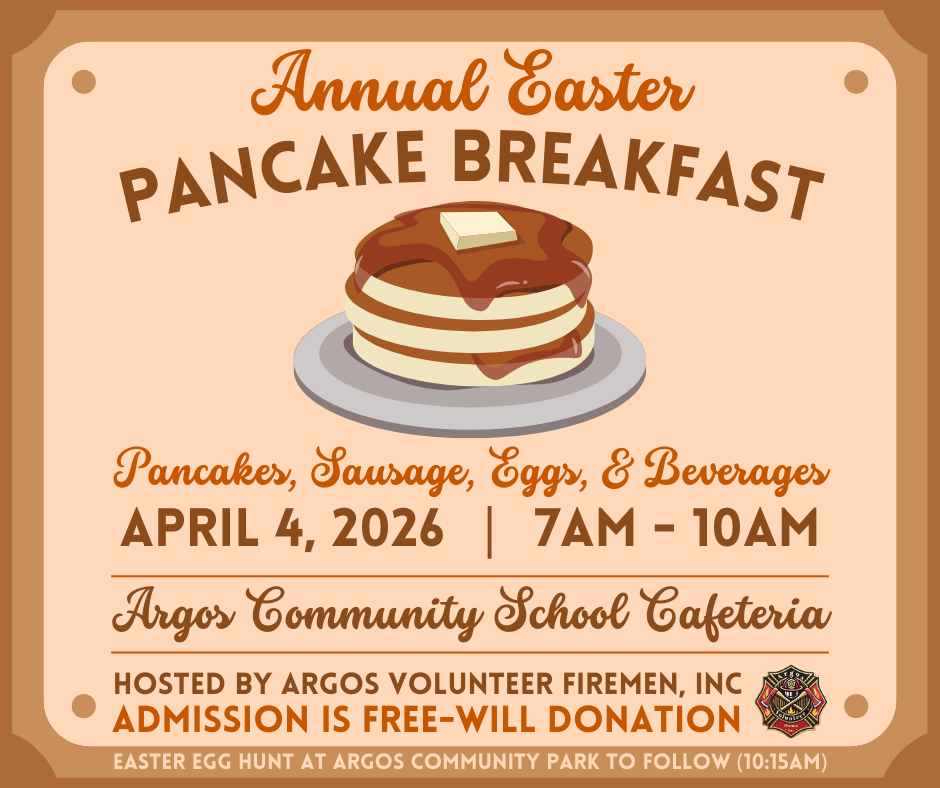 Argos Community School 500 N. Yearick St., Argos, IN, United StatesStart your Easter weekend with a full plate and a full heart! The Argos Volunteer Firemen, Inc. invite the community to their Annual Easter Pancake Breakfast on: Saturday, April 4, […]