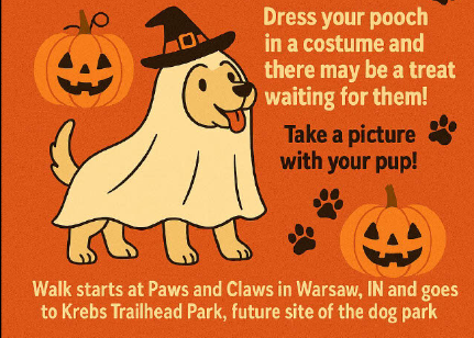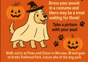 WARSAW — The first annual “Dog Park Dog Walk” will be held Saturday, Oct. 25, from 10 a.m. to noon, beginning at Paws and Claws & Company, 1801 E. Market St., Warsaw.