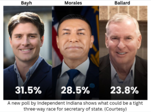 “This race is a referendum on Diego Morales’s tenure as secretary of state and this poll reiterates that Beau Bayh is the only candidate in the race that can defeat him and put an end to his blatant corruption,” Bayh campaign manager Jack Tormoehlen said.