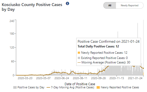 Hospitalizations in District 2, which include Kosciusko County, have also dropped since peaking in mid November, down to 120, a number that hasn’t been seen since October 3rd when 121 people were hospitalized.