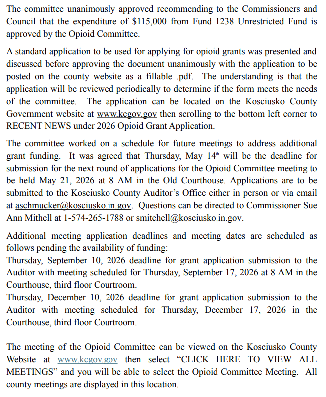Kosciusko Opioid Committee provides update, application process