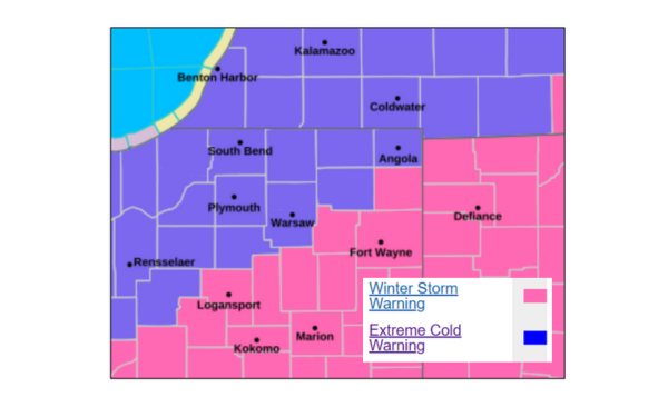 Aside from snow, northern Indiana remains bitterly cold.