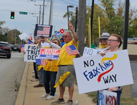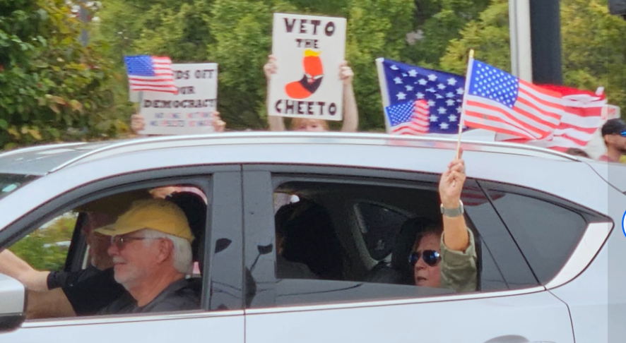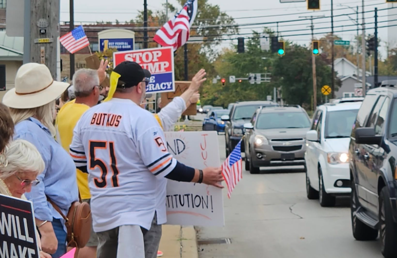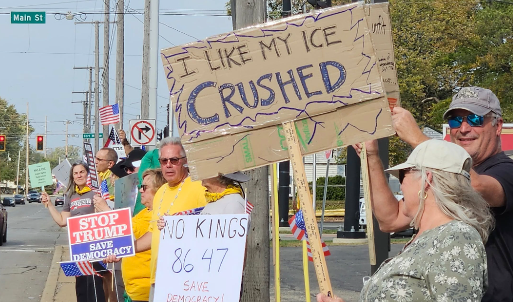 WARSAW — Charles and Deb Eichman drove back from Nappanee to their home in Warsaw Saturday with hopes of checking out the No Kings protest, but did not expect much of a crowd.