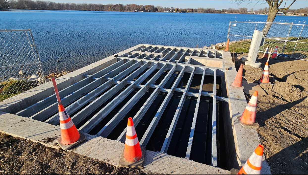 The new 90-foot pier that encompasses part of the old the pump house to the west will accommodate both boaters and fishing enthusiasts.