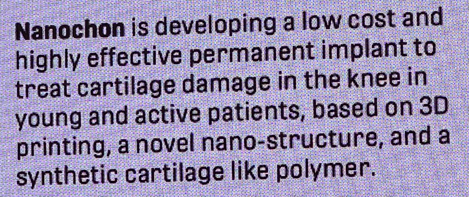 The emerging companies pitched proposals ranging from imaging collection to the tracking of medical history. Some relied on artificial intelligence. Two companies focused on solutions for damaged cartilage while another put forth a plan to develop a smart implant device that is adjustable.