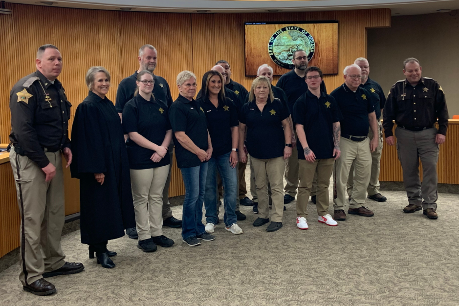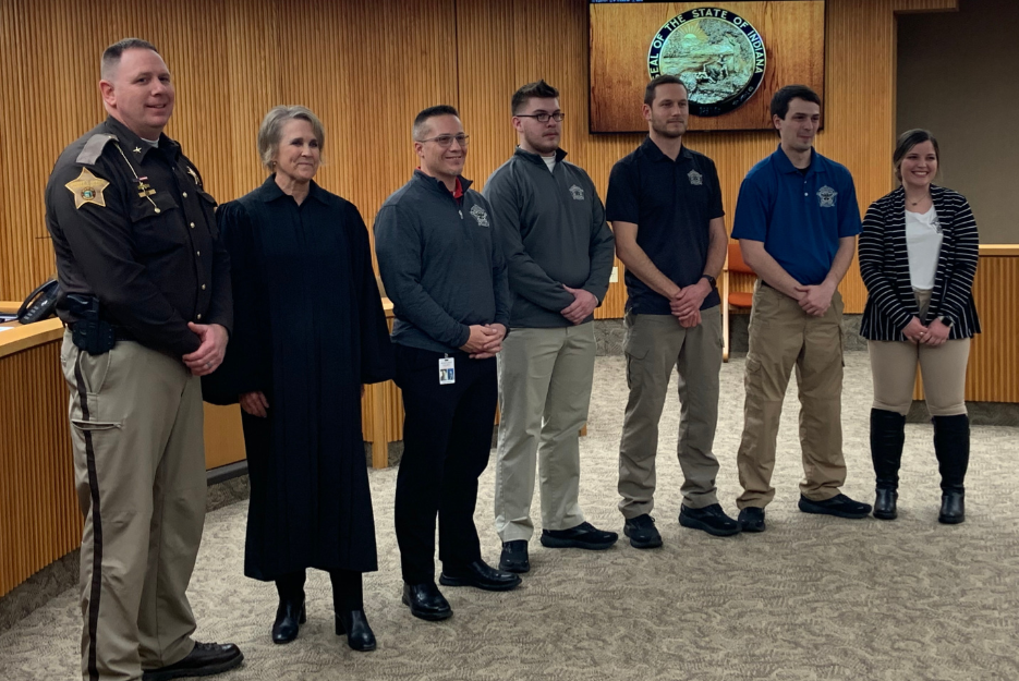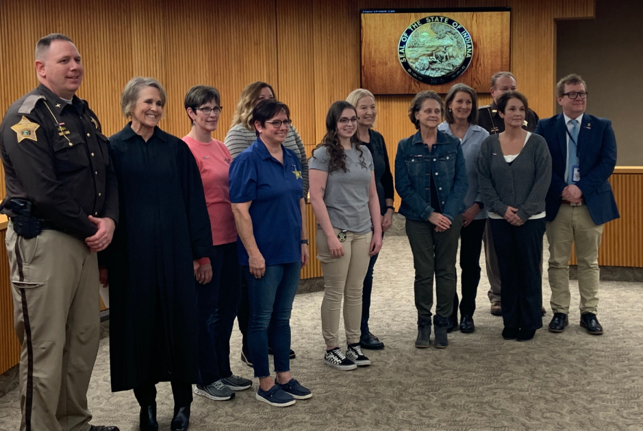 Kosciusko County Sheriff Jim Smith and Superior Court 1 Judge Karin McGrath stand in the middle with civilian administration. Photo provided.