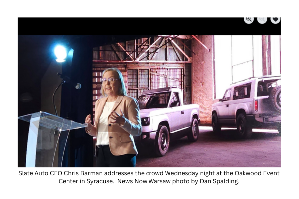SYRACUSE — Several hundred people packed the Oakwood Event for KEDCO’s annual dinner Wednesday night to hear Slate Auto’s CEO, Chris Barman, share insights into why the new electric vehicle company chose Warsaw for its manufacturing plant.