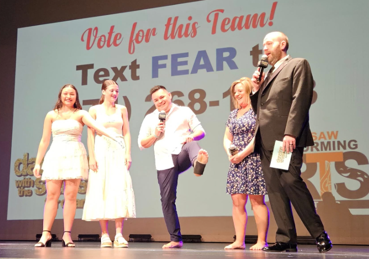 From left, the winning team includes dancer Karris Nissley, student choreographers Malori MchDaniels and Kayanna Secrest and dancer Griffin Heckaman. News Now Warsaw photo by Dan Spalding.