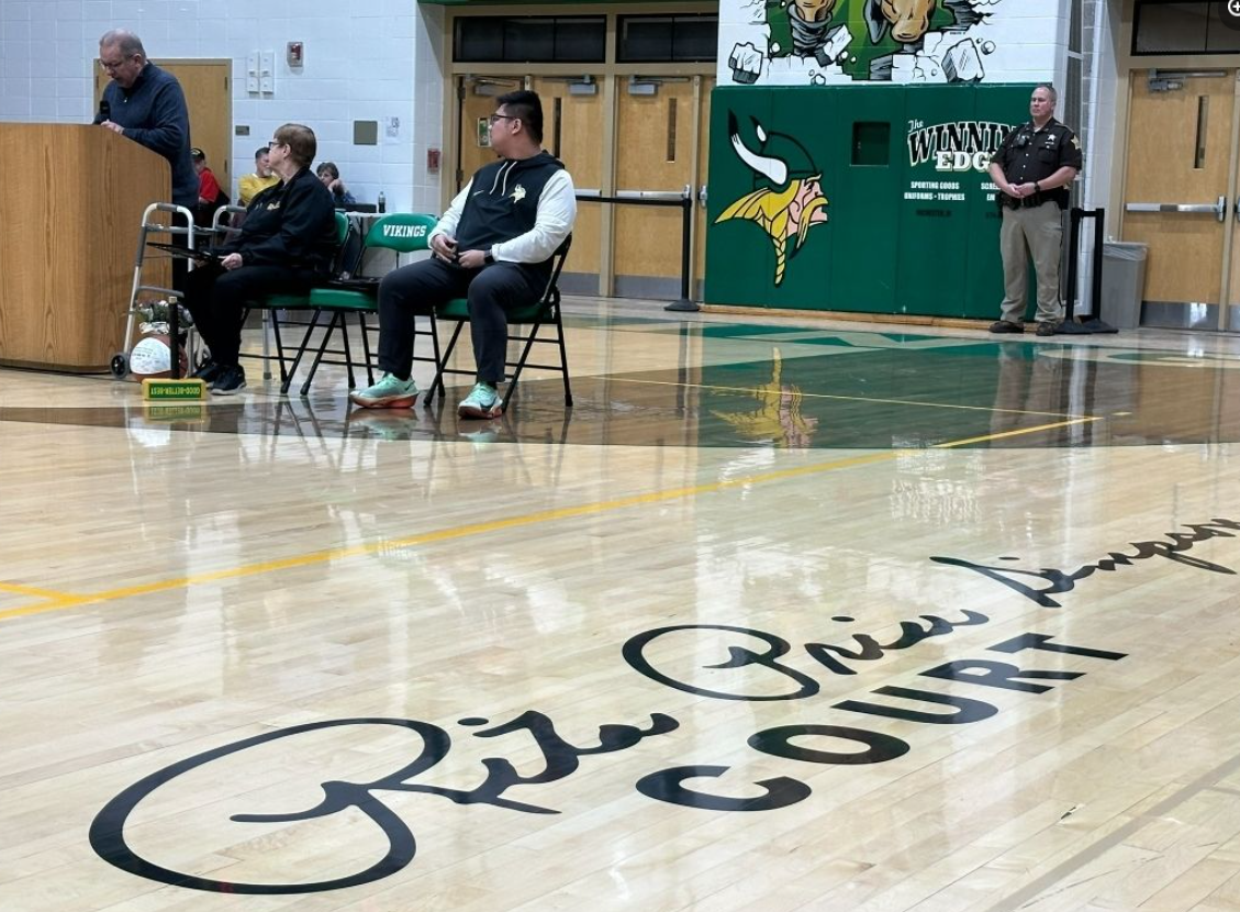 The ceremony was held shortly before the start of the varsity game against Huntington North, which was won by Tippecanoe Valley, 58-38.