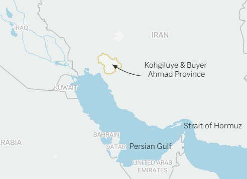 AP map shows where Iran said it’s looking for a US aircraft crew member.