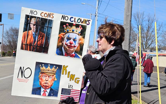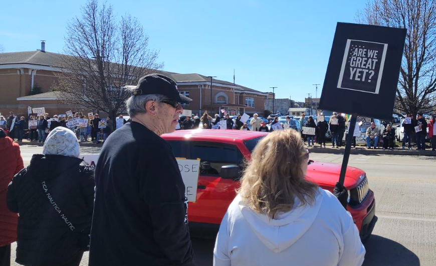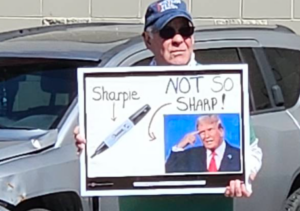 Even President Trump’s five-minute discussion with the media last week about the use of Sharpies became fodder for at least one protester. News Now Warsaw photo by Dan Spalding.