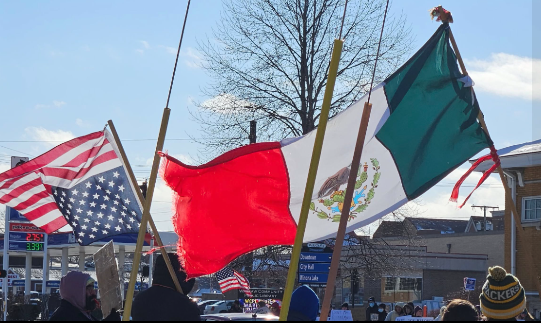 The rally, like many in the past year in Warsaw, was a boisterous event with many motorists honking their horns as they drove past the Warsaw Community Public Library in support of protesters who were lined up along North Detroit Street near Center Street.