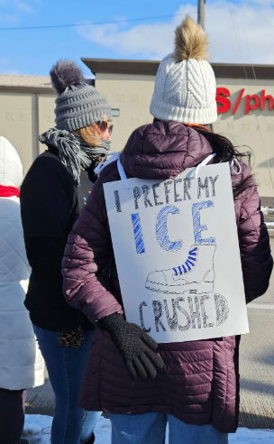 While numerous signs at the Warsaw protest attempted to lighten the mood with puns about ICE, Robert Vermillion’s assessment on the killing of Good was sobering.