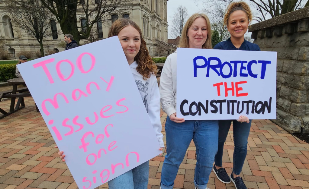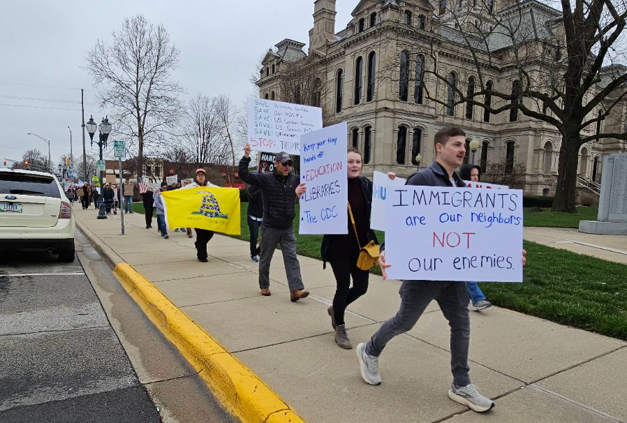 WARSAW — Kosciusko County, considered one of the reddest red counties in the consistently conservative Indiana, joined 1,200 locations nationwide where “Hands-off” protestors tried to send a message Saturday to the Trump White House.