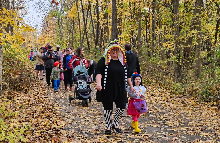 Children and parents filled the trails to collect candy from about 32 groups spread across the wooded paths.